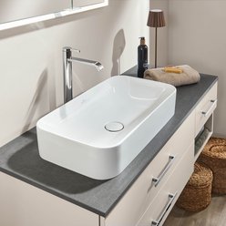 2morrow bietet ein flexibles Baukastensystem für die individuelle Badgestaltung. Die Basis bildet eine elegante, variable Platte in sechs Ausführungen, die als Fundament für Aufsatzwaschtische dient. Dieses System wird ideal durch Unterschränke, Anbauschränke und Regale ergänzt, die vielfältigen Stauraum schaffen.